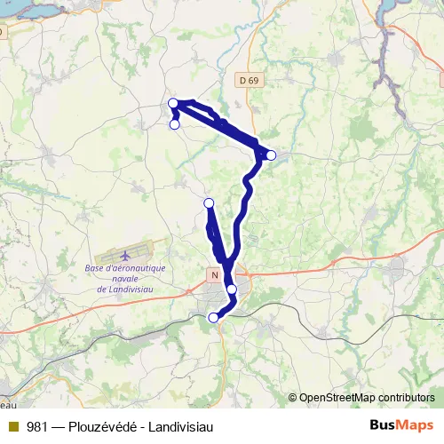 Click here to view the nearest 981 - Plouzévédé - Landivisiau bus stop.