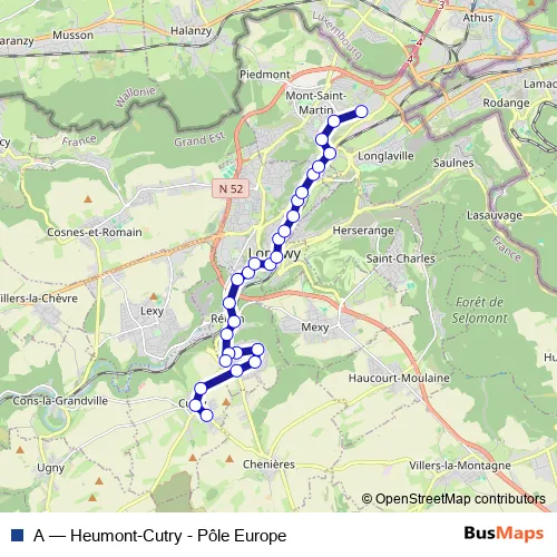 Click here to view the nearest A - Heumont-Cutry - Pôle Europe bus stop.