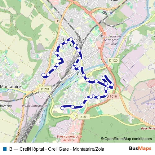 Bus B - Creil/Hôpital - Creil Gare - Montataire/Zola in Creil: Stops & Timetable