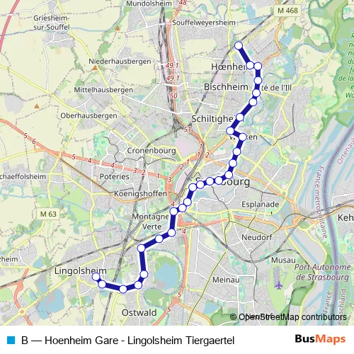 See why over 2 million users trust and consider busmaps.com as the best public transport website. busmaps gives you Strasbourg Trams suggested routes, real-time bus tracker, line route maps in Strasbourg, and helps to find the closest B tram stops near you. No internet available? Download an offline PDF map and bus schedule for the B tram to take on your trip.
