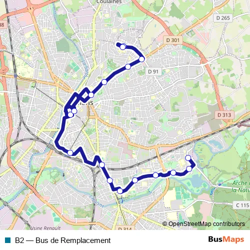See why over 2 million users trust and consider busmaps.com as the best public transport website. busmaps gives you Le Mans Buses suggested routes, real-time bus tracker, line route maps in Le Mans, and helps to find the closest B2 bus stops near you. No internet available? Download an offline PDF map and bus schedule for the B2 bus to take on your trip.