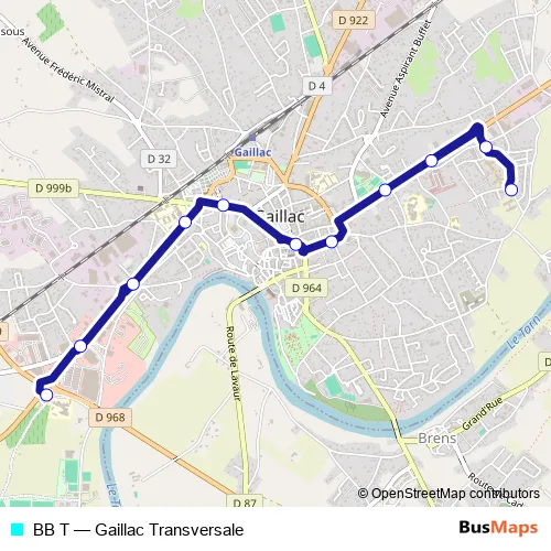 The first stop of the BB T bus route is Gaillac - Ecole L Michel and the last stop is Gaillac Coll Taillefer. BB T (Gaillac Transversale) is operational during todos los días.