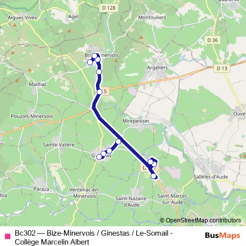 Click here to view the nearest Bc302 - Bize-Minervois / Ginestas / Le-Somail - Collège Marcelin Albert bus stop.
