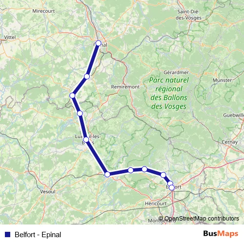 See why over 2 million users trust and consider busmaps.com as the best public transport website. busmaps gives you Belfort Rail Services suggested routes, real-time bus tracker, line route maps in Belfort, and helps to find the closest Belfort - Epinal rail stops near you. No internet available? Download an offline PDF map and bus schedule for the Belfort - Epinal rail to take on your trip.