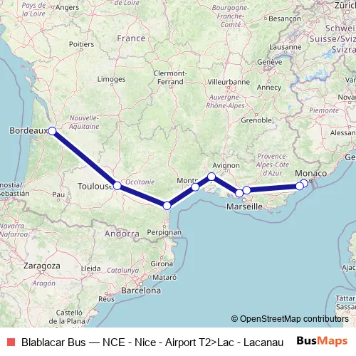 See why over 2 million users trust and consider busmaps.com as the best public transport website. busmaps gives you Nice Buses suggested routes, real-time bus tracker, line route maps in Nice, and helps to find the closest Blablacar Bus bus stops near you. No internet available? Download an offline PDF map and bus schedule for the Blablacar Bus bus to take on your trip.