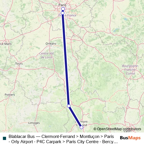 Bus Blablacar Bus - Clermont-Ferrand > Montluçon > Paris - Orly Airport - P4C Carpark > Paris City Centre - Bercy Seine: Full Schedule in Paris