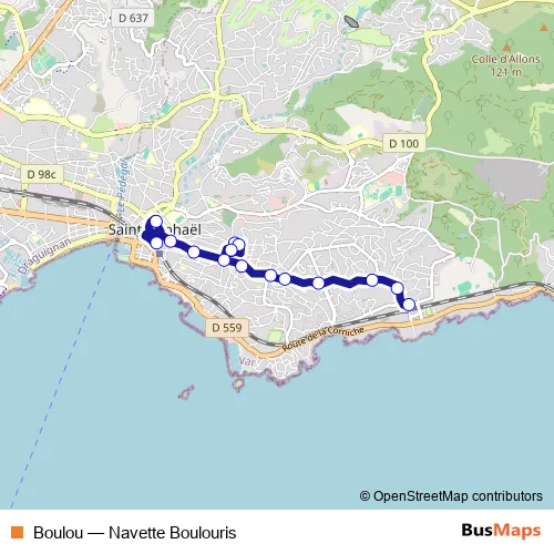See why over 2 million users trust and consider busmaps.com as the best public transport website. busmaps gives you Saint-Raphael Buses suggested routes, real-time bus tracker, line route maps in Saint-Raphael, and helps to find the closest Boulou bus stops near you. No internet available? Download an offline PDF map and bus schedule for the Boulou bus to take on your trip.