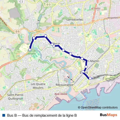 See why over 2 million users trust and consider busmaps.com as the best public transport website. busmaps gives you Brest Buses suggested routes, real-time bus tracker, line route maps in Brest, and helps to find the closest Bus B bus stops near you. No internet available? Download an offline PDF map and bus schedule for the Bus B bus to take on your trip.