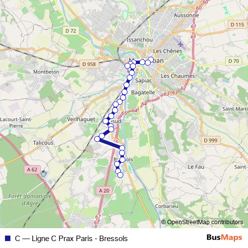 Click here to view the nearest C - Ligne C Prax Paris - Bressols bus stop.