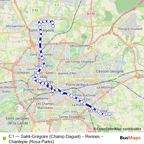 Click here to view the nearest C1 - Saint-Grégoire (Champ Daguet) – Rennes – Chantepie (Rosa Parks) bus stop.