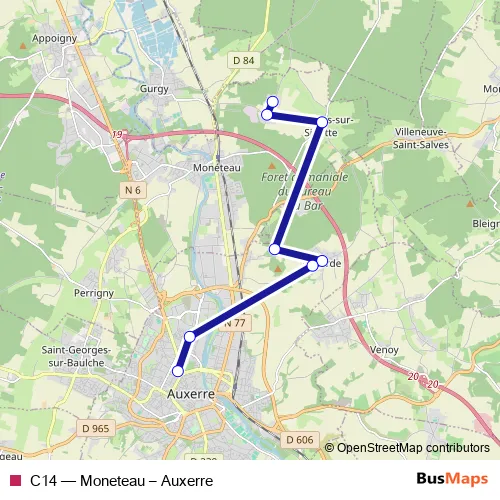 Click here to view the nearest C14 - Moneteau – Auxerre bus stop.
