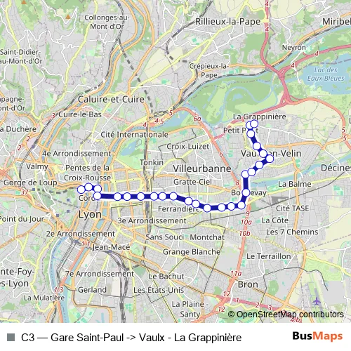 Bus C3 - Gare Saint-Paul -> Vaulx - La Grappinière: Full Schedule in Lyon