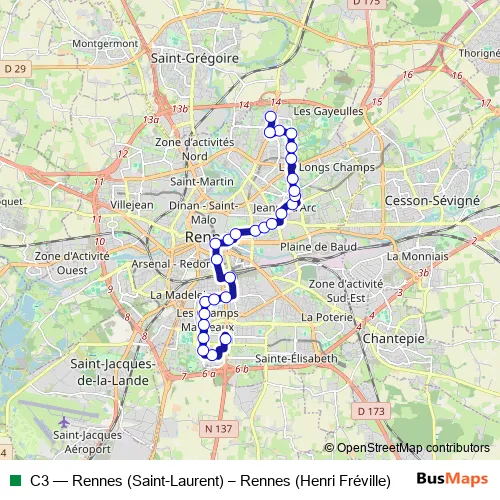 Click here to view the nearest C3 - Rennes (Saint-Laurent) – Rennes (Henri Fréville) bus stop.