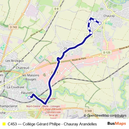 Click here to view the nearest C453 - Collège Gérard Philipe - Chauray Arandelles bus stop.