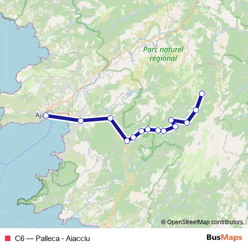 The first stop of the C6 bus route is Aiacciu - A Gara DI Bus and the last stop is Palleca. C6 (Palleca - Aiacciu) is operational during todos los días.