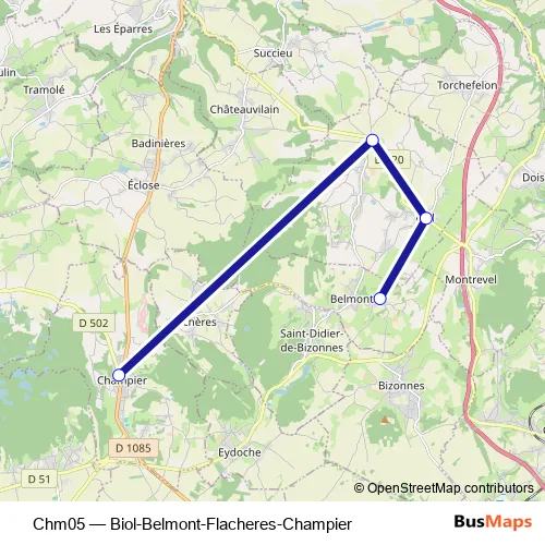 Click here to view the nearest Chm05 - Biol-Belmont-Flacheres-Champier bus stop.