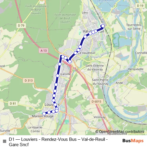 Bus D1 - Louviers - Rendez-Vous Bus – Val-de-Reuil - Gare Sncf in Louviers: Stops & Timetable