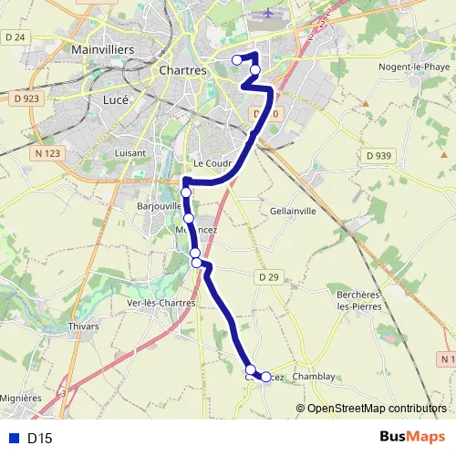See why over 2 million users trust and consider busmaps.com as the best public transport website. busmaps gives you Chartres Buses suggested routes, real-time bus tracker, line route maps in Chartres, and helps to find the closest D15 bus stops near you. No internet available? Download an offline PDF map and bus schedule for the D15 bus to take on your trip.