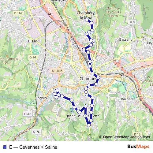 See why over 2 million users trust and consider busmaps.com as the best public transport website. busmaps gives you Chambery Buses suggested routes, real-time bus tracker, line route maps in Chambery, and helps to find the closest E bus stops near you. No internet available? Download an offline PDF map and bus schedule for the E bus to take on your trip.
