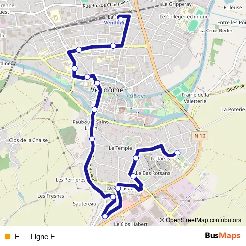 The first stop of the E bus route is Vendome - Gare Ter and the last stop is Vendome - Robert Lasneau. E (Ligne E) is operational during entre semana.