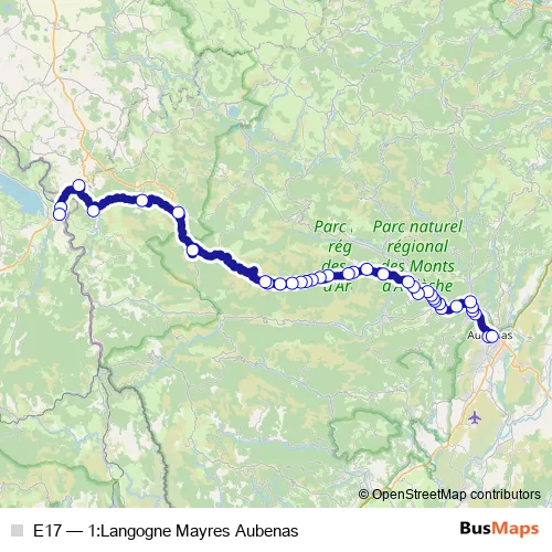 Bus E17 - 1:Langogne Mayres Aubenas in Thueyts: Stops & Timetable