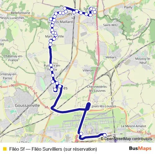 Bus Filéo Sf - Filéo Survilliers (sur réservation): Full Schedule in Fosses