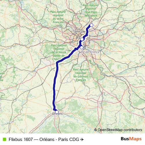 Click here to view the nearest Flixbus 1607 - Orléans - Paris CDG ✈ bus stop.