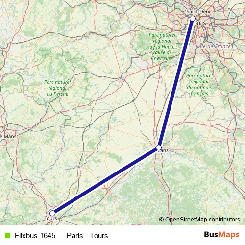 Click here to view the nearest Flixbus 1645 - Paris - Tours bus stop.