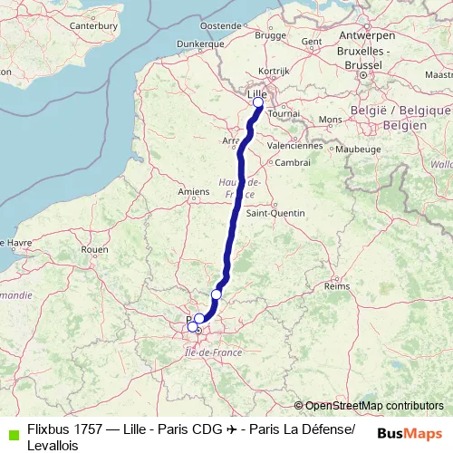 Click here to view the nearest Flixbus 1757 - Lille - Paris CDG ✈ - Paris La Défense/Levallois bus stop.