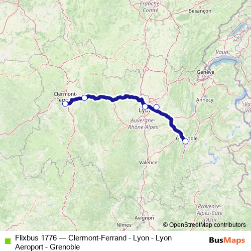 Click here to view the nearest Flixbus 1776 - Clermont-Ferrand - Lyon - Lyon Aeroport - Grenoble bus stop.