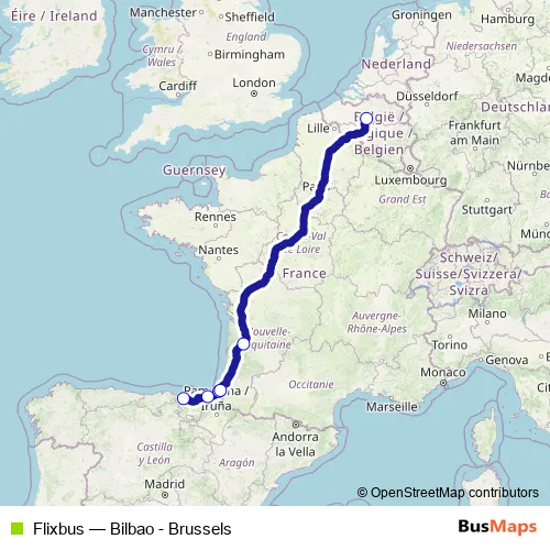Bus Flixbus - Bilbao - Brussels: Full Schedule in Bayonne