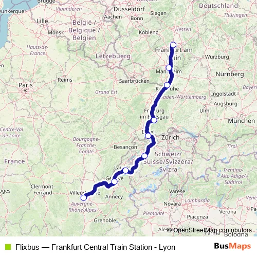 Bus Flixbus - Frankfurt Central Train Station - Lyon: Full Schedule in Geneve