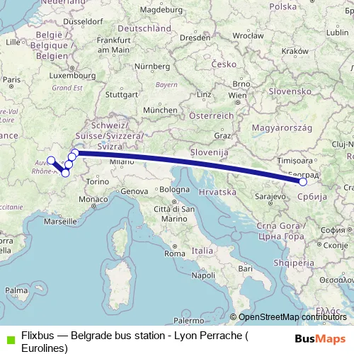 Click here to view the nearest Flixbus - Belgrade bus station - Lyon Perrache (Eurolines) bus stop.
