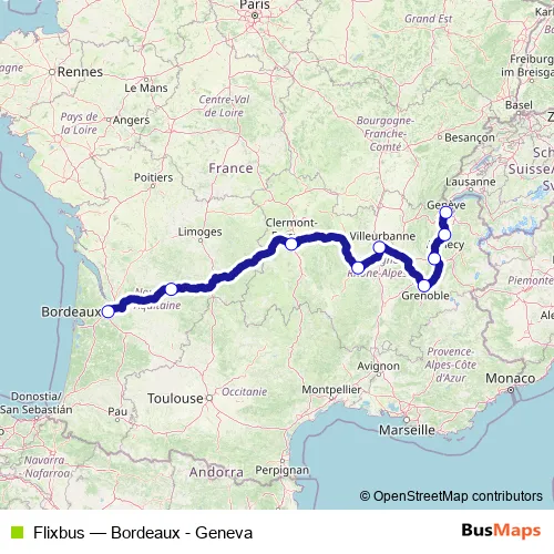 Bus Flixbus - Bordeaux - Geneva: Full Schedule in Geneve