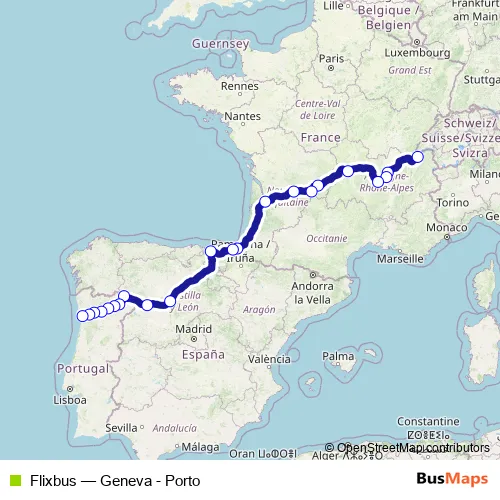 Rue François-Bonivard - Rue Honoré Pététin - Esplanade de France - Rue Rouget de l'Isle - La Transeuropéenne - Boulevard des Saveurs - Boulevard des Frères Moga - Rue de Béhobie - Federico Garcia Lorca pasealekua - Calle Luis Briñas / Luis Briñas kalea - Calle de San José - Calle de Jiménez de Quesada - Avenida Doutor Francisco Sá Carneiro - Rua das Rosas - Rua Dom Afonso III - Rua Militão Bessa Ribeiro - Avenida Egas Moniz - Rua do Pinheiro de Campanhã