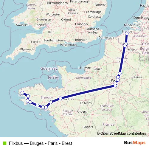 Click here to view the nearest Flixbus - Bruges - Paris - Brest bus stop.