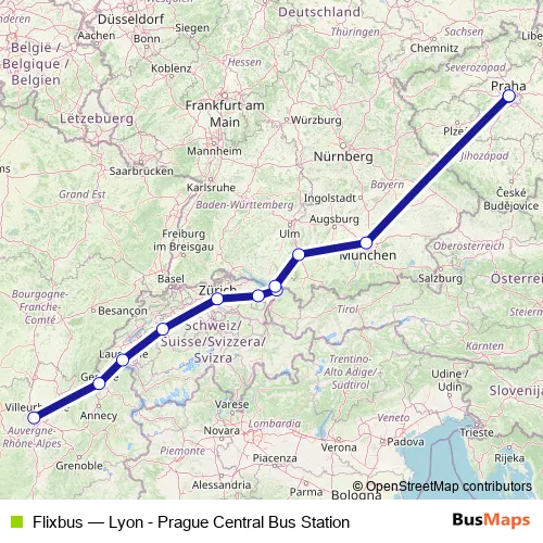 Bus Flixbus - Lyon - Prague Central Bus Station Schedule in Prague