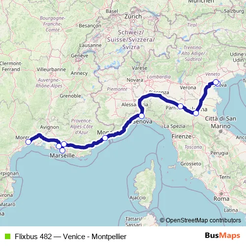 Bus Flixbus 482 - Venice - Montpellier: Full Schedule in Venice