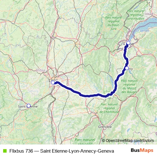 Bus Flixbus 736 - Saint Etienne-Lyon-Annecy-Geneva: Full Schedule in Geneve