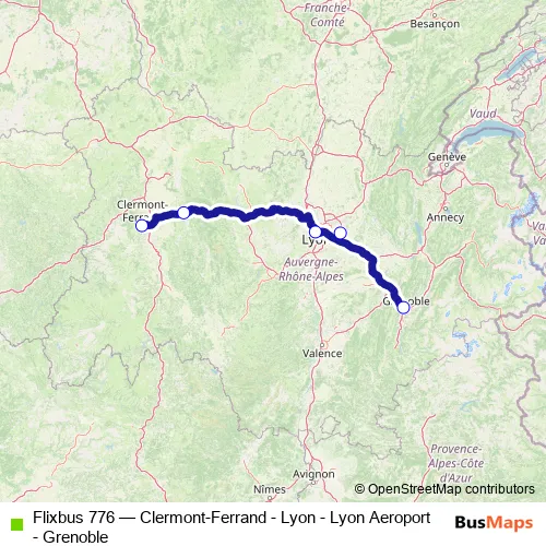 Click here to view the nearest Flixbus 776 - Clermont-Ferrand - Lyon - Lyon Aeroport - Grenoble bus stop.