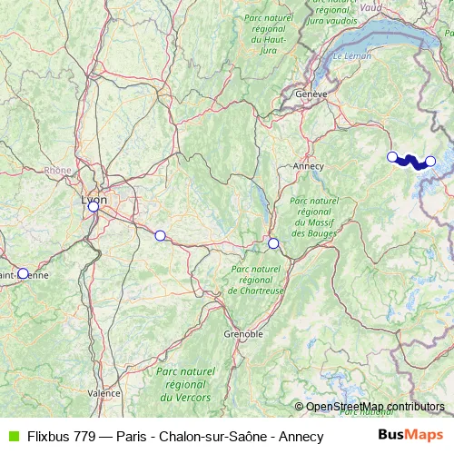 Click here to view the nearest Flixbus 779 - Paris - Chalon-sur-Saône - Annecy bus stop.