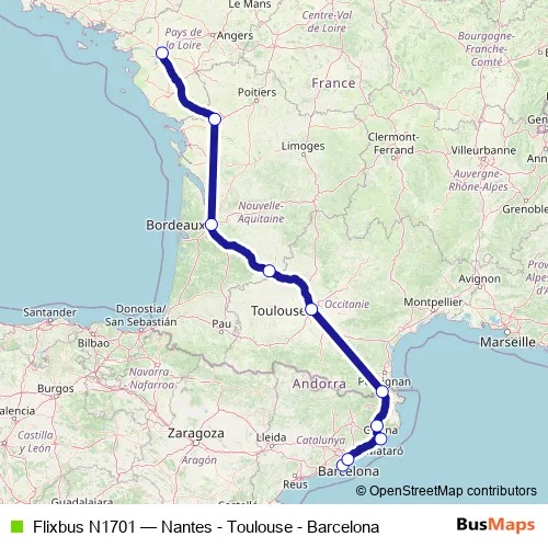 Barcelona (Airport Josep Tarradellas - El Prat - T2c) ➞ Nantes (Central Bus Station)