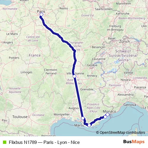 Click here to view the nearest Flixbus N1789 - Paris - Lyon - Nice bus stop.