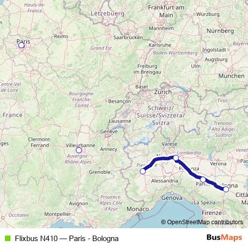 Vuelta: Paris (Pershing - Porte Maillot) ➞ Bologna (central bus station)