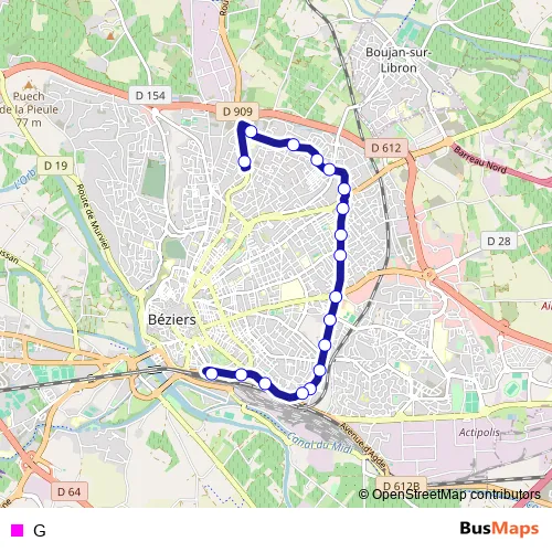 Bus G in Beziers: Stops & Timetable