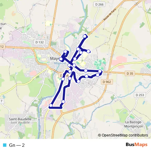 See why over 2 million users trust and consider busmaps.com as the best public transport website. busmaps gives you Mayenne Buses suggested routes, real-time bus tracker, line route maps in Mayenne, and helps to find the closest Gn bus stops near you. No internet available? Download an offline PDF map and bus schedule for the Gn bus to take on your trip.