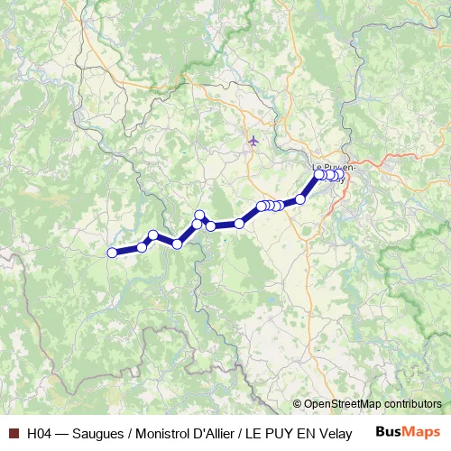 Click here to view the nearest H04 - Saugues / Monistrol D'Allier / LE PUY EN Velay bus stop.