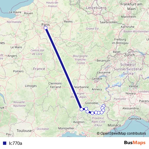 The first stop of the Ic770a rail route is Paris-Austerlitz and the last stop is Briançon. Ic770a is operational during todos los días.