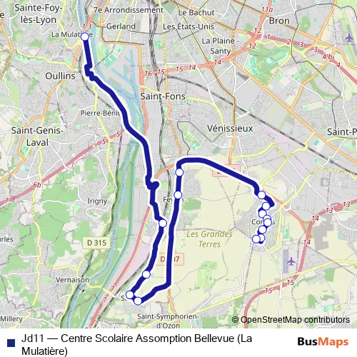 See why over 2 million users trust and consider busmaps.com as the best public transport website. busmaps gives you Lyon Buses suggested routes, real-time bus tracker, line route maps in Lyon, and helps to find the closest Jd11 bus stops near you. No internet available? Download an offline PDF map and bus schedule for the Jd11 bus to take on your trip.