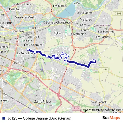 See why over 2 million users trust and consider busmaps.com as the best public transport website. busmaps gives you Lyon Buses suggested routes, real-time bus tracker, line route maps in Lyon, and helps to find the closest Jd125 bus stops near you. No internet available? Download an offline PDF map and bus schedule for the Jd125 bus to take on your trip.